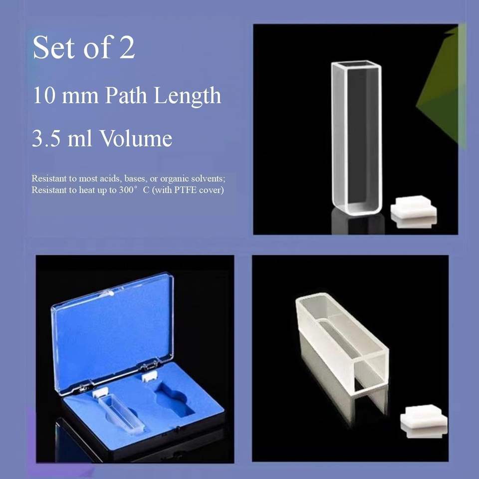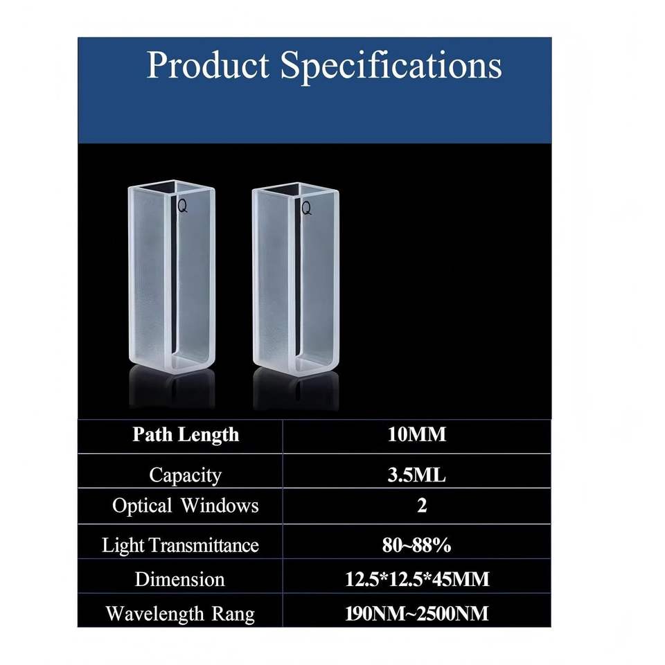 XZ LAB จำหน่ายคิวเวตต์ควอตซ์ UV ชุดเซลล์มาตรฐาน 2 ชิ้น ความยาวเส้นทาง 10 มม. ปริมาตร 3.5 มล. ช่วงสเปกตรัม 190-2500 นาโนเมตร รับประกัน 3 ปี
