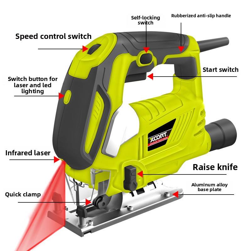 เลื่อยจิ๊กซอว์ไฟฟ้าพกพาพลังสูง Xcort สำหรับใช้ในบ้าน งาน DIY เลื่อยตัดไม้ เครื่องมือช่าง ผู้ผลิต