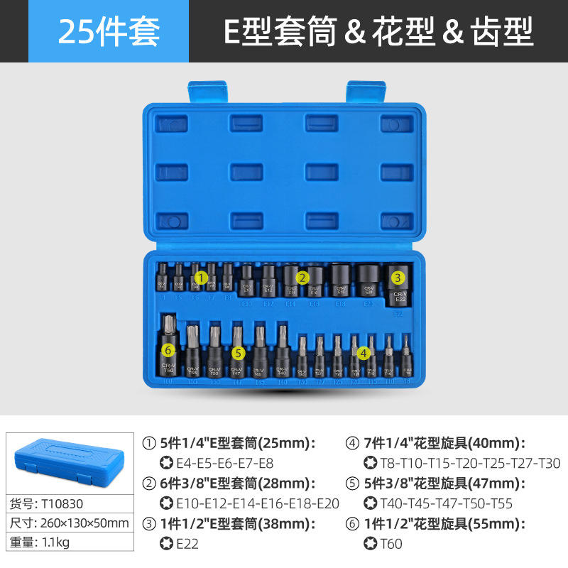 ชุดเครื่องมือซ่อมรถยนต์ Xi Meng 25 ชิ้น ชุดประแจหกเหลี่ยมแบบ E และ T พร้อมหัว Torx เคลือบสีดำออกไซด์