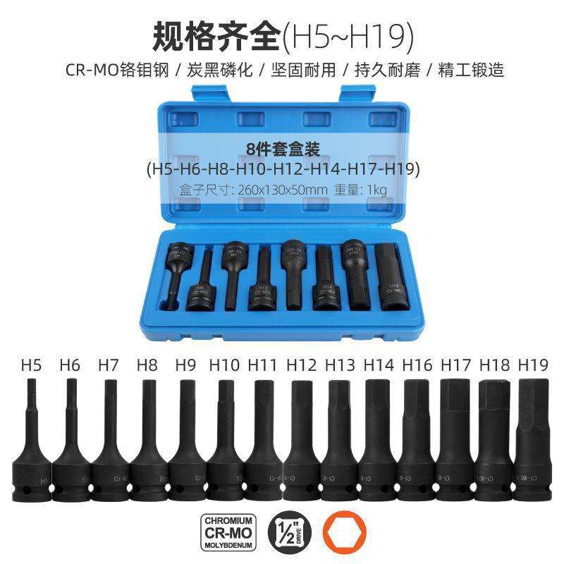 ชุดประแจลม Xi Meng พร้อมหัวบิตในตัว ขนาด 1/2 นิ้ว เมตริก H19 เครื่องมือซ่อมรถยนต์ ประแจปลายเดียว