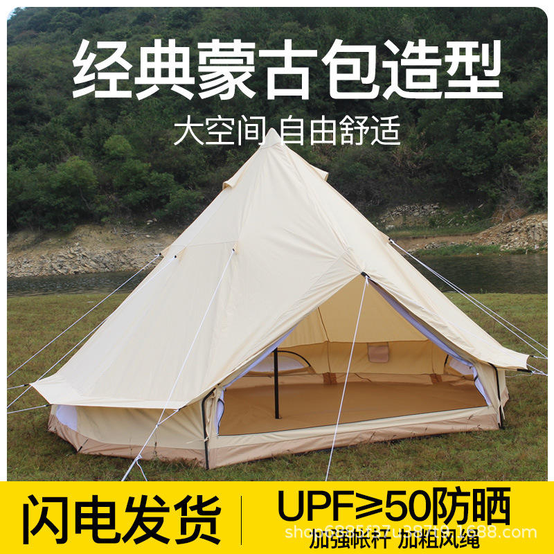 เต็นท์กระโจมเซียะเมิน 400*400*250 สีเบจ ผ้าฝ้าย ทรงปิรามิด สำหรับ 5-8 คน กันน้ำ ใช้กลางแจ้ง