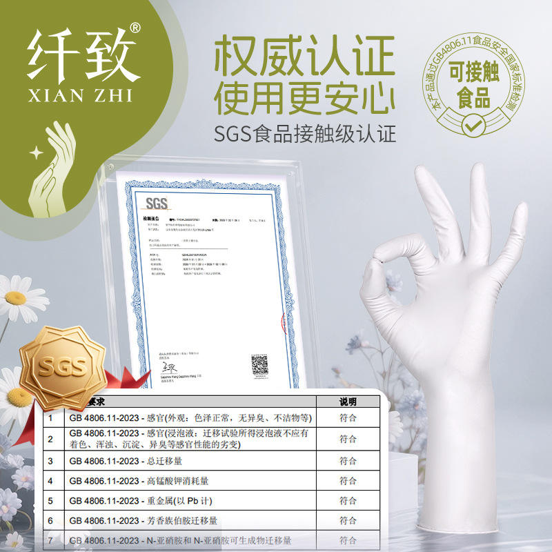 เซียนจือถุงมือไนไตรล์แบบใช้แล้วทิ้ง หนาพิเศษ เกรดอาหาร สำหรับล้างจาน แคมป์ปิ้ง สีขาวล้วน