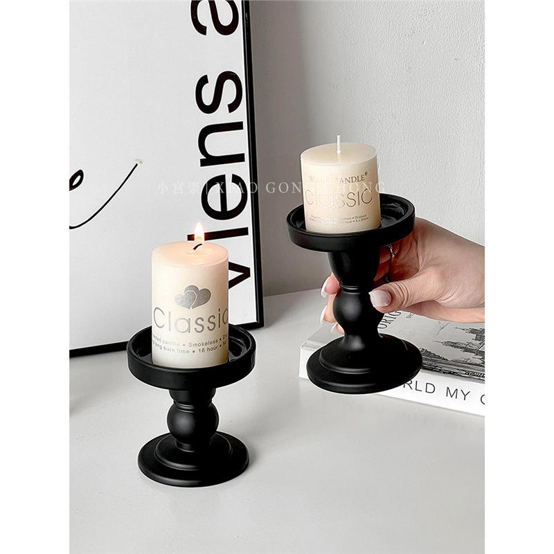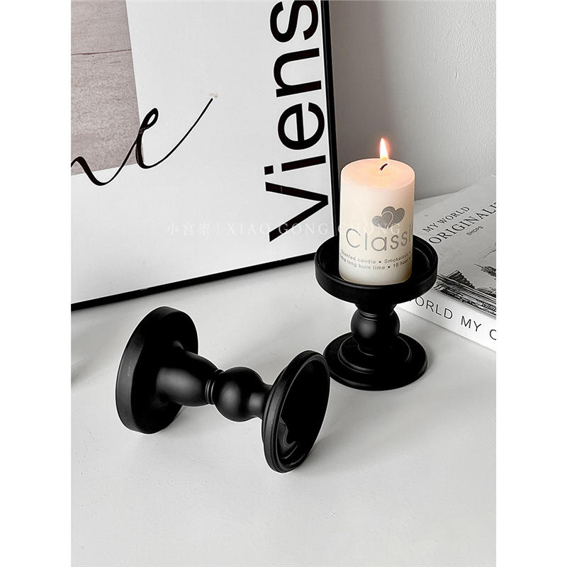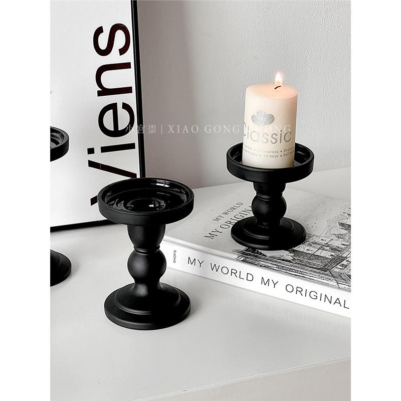 เชิงเทียนวินเทจสีดำ Xiao Gong แก้วด้านทรงกระบอก ของตกแต่งบ้าน ของขวัญสำหรับโฆษณา