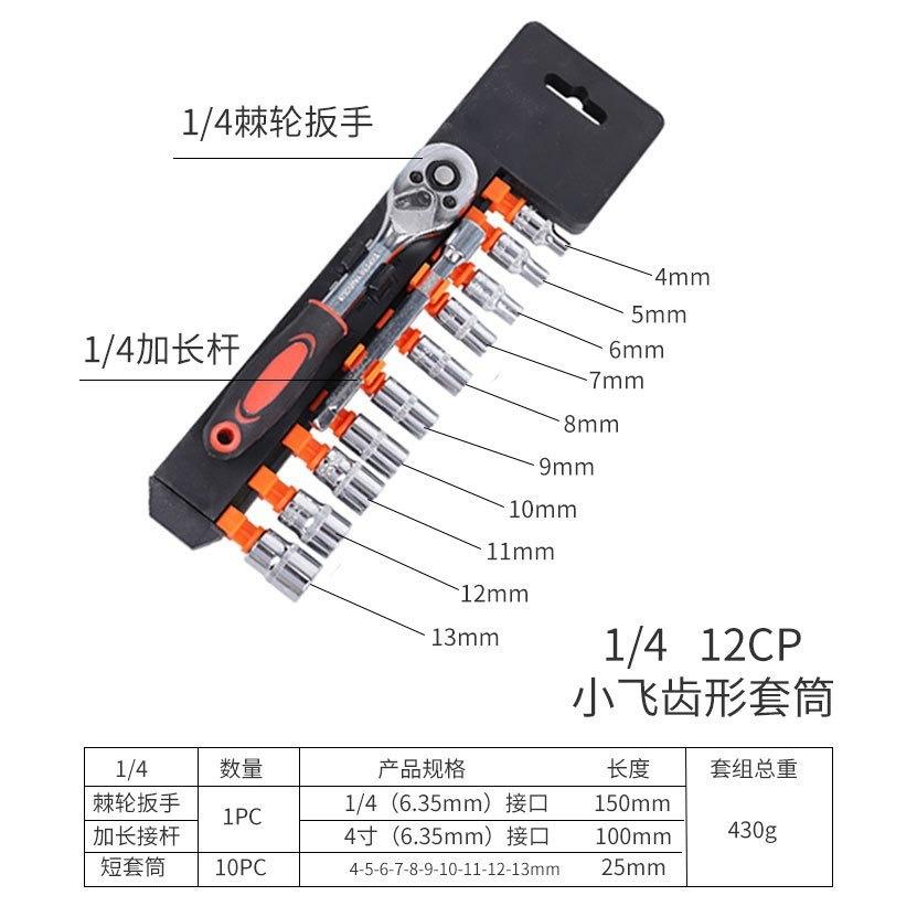 ชุดประแจซ็อกเก็ตเสี่ยวเฟย 1/4 นิ้ว 6.3 มม. 12 ชิ้น เกรดอุตสาหกรรม เหล็กโครเมียมวาเนเดียม ชุดเครื่องมือซ่อมแซมบ้าน