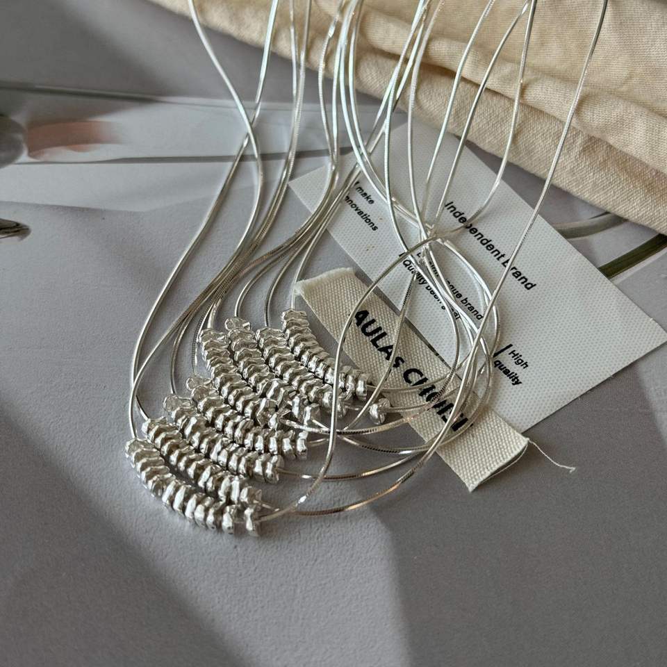Xiaohongshu Hot Item S925 Sterling Silver Snake Bone Necklace for Women Irregular Broken Silver Korean Fashion Pendant