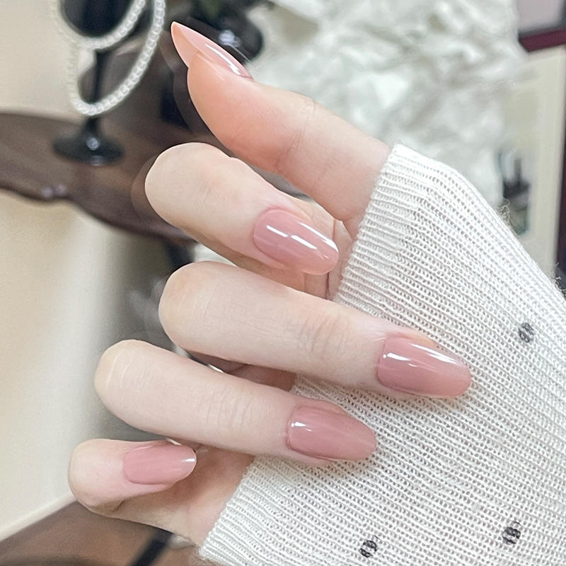 Xiaohongshu เล็บขายดีสีทึบปลายเล็บแบบสวมใส่สไตล์ฝรั่งเศสทำด้วยมือคุณภาพสูง