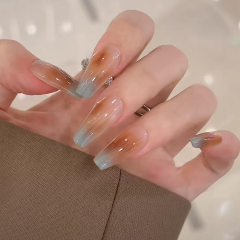 Xiaohongshu เล็บปลอมปลายเล็บทำมือระดับไฮเอนด์ขายดีสติกเกอร์ติดเล็บตาแมวผีเสื้อ30ชิ้น