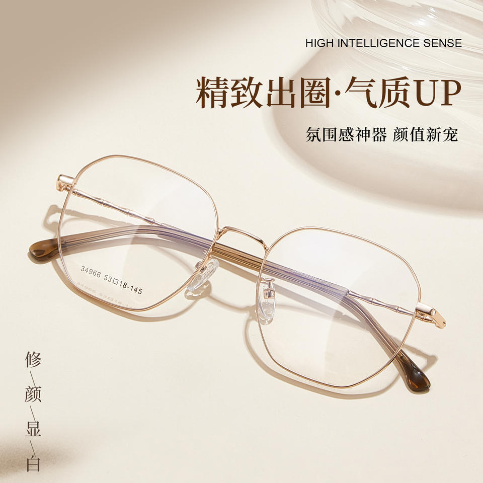 เสี่ยวหงชูกรอบแว่นตาโลหะผสมขอบทองสำหรับผู้หญิง 53-18-145 แว่นตาอ่านหนังสือโลหะน้ำหนักเบาสไตล์ย้อนยุคที่ละเอียดอ่อนบริสุทธิ์