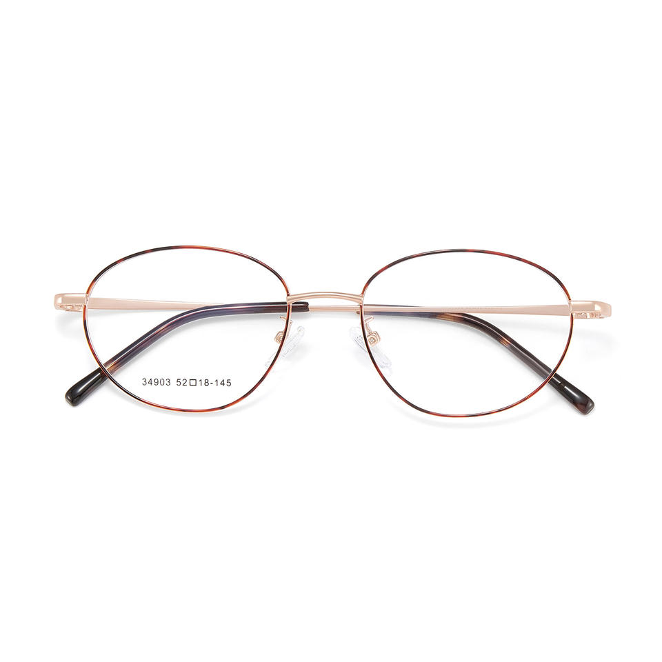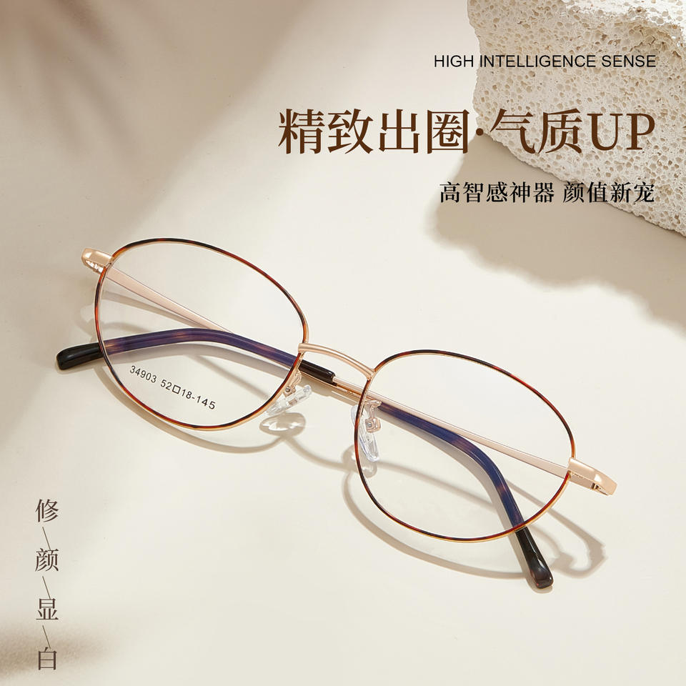 แว่นตาผู้หญิงทรงวงรี Xiaohongshu รุ่น 34903 กรอบโลหะผสมสีทองเต็มกรอบ เลนส์อะคริลิกป้องกันรังสียูวี
