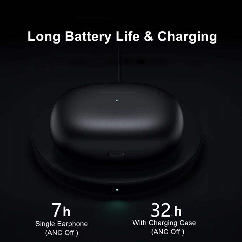 อายุการใช้งานแบตเตอรี่หูฟัง:7 ชม. (ปิด ANC), 32 ชม. (เมื่อปิด ANC ในกล่องชาร์จ)