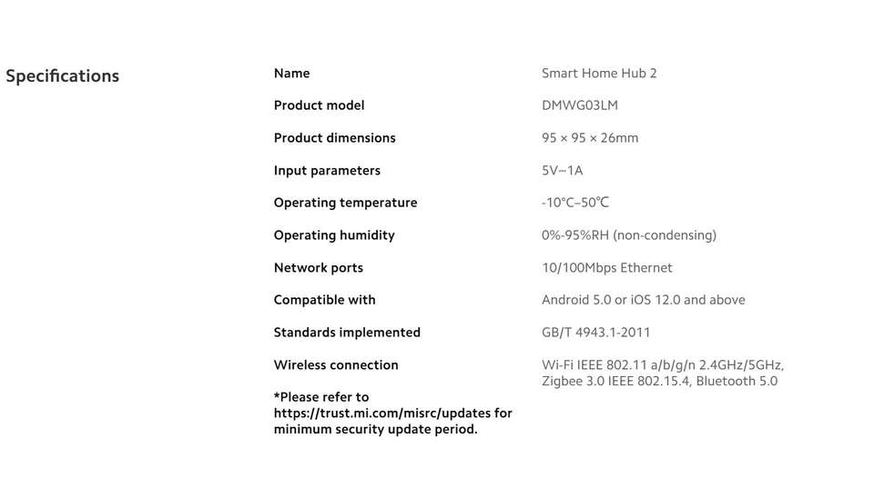 หมายเลขรุ่น:Xiaomi Mi Smart Home Hub 2