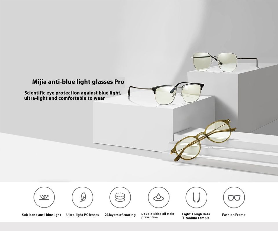 Xiaomi Mijia แว่นตาป้องกันแสงสีฟ้า Pro Frame DOUBLE SIDE Oil มลพิษการป้องกันแสงไทเทเนียม MJFA05LM