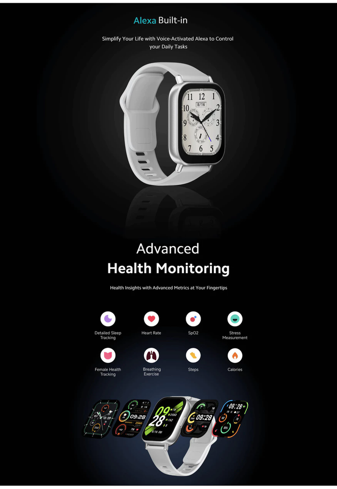 function:Answer Call, Push Message, Alarm Clock, Heart Rate Tracker, Countdown, Remote Control, Fitness Tracker, Sleep Tracker, Passometer, Call Reminder, Message Reminder, Activity Tracker, Social Media Notifications, Calorie Tracker, Accelerometer, Distance Tracker, Music Player, Menstrual Management, AI voice assistant