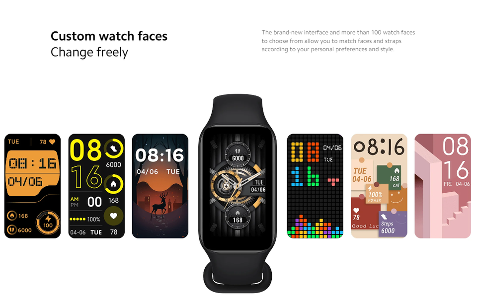 Xiaomi สายรัดข้อมืออัจฉริยะ8แบบ, สายรัดข้อมือวัดอัตราการเต้นของหัวใจจอแสดงผลขนาดใหญ่พิเศษสายรัดข้อมือฟิตเนส50โหมดออกกำลังกาย