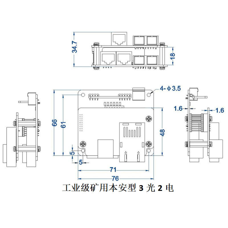 ตัวรับส่งสัญญาณไฟเบอร์ออปติก Xicom 100Mbps 2-ไฟเบอร์ 3-ไฟเบอร์ 3-ไฟฟ้า ป้องกันการระเบิด สำหรับงานเหมือง