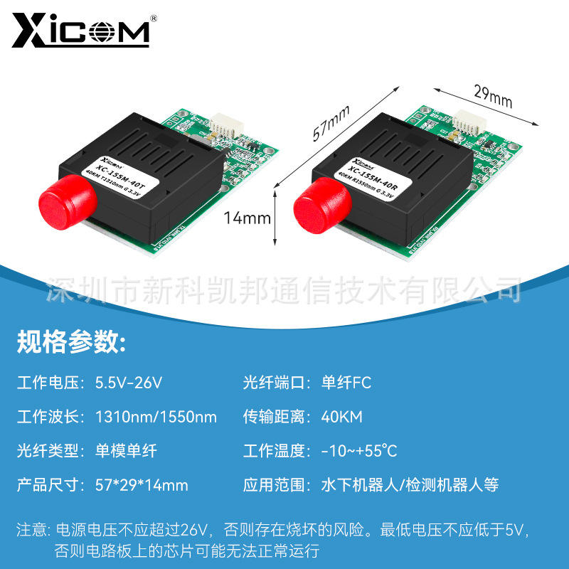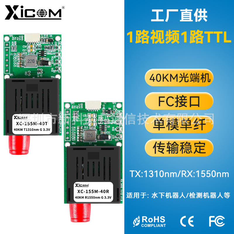 ตัวรับส่งสัญญาณไฟเบอร์ออปติก Xicom 155M 40 กม. 1310 นาโนเมตร 1550 นาโนเมตร โมดูลส่งสัญญาณวิดีโอแบบติดตั้งบนพื้นดินและบนอากาศ