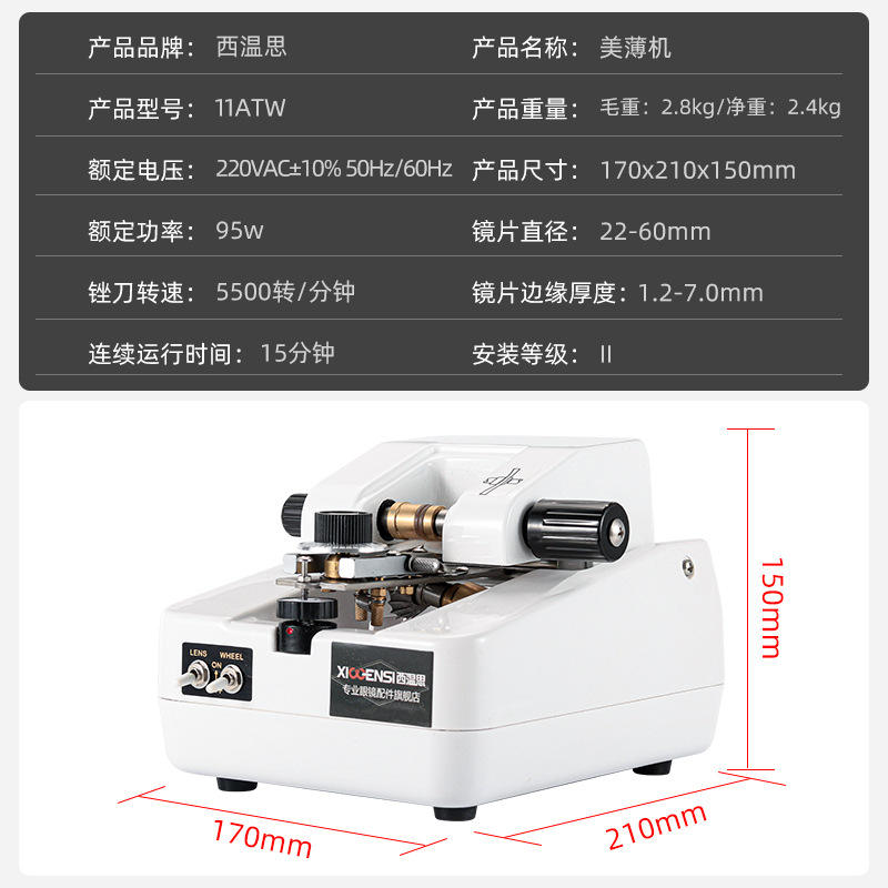 เครื่องตัดเลนส์แว่นตา Xigensi ขนาด 170x210x150 มม. 95 วัตต์ 5500 รอบต่อนาที สำหรับเลนส์สายตาสั้นและเลนส์กันแดด