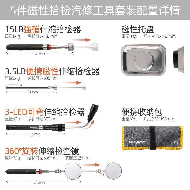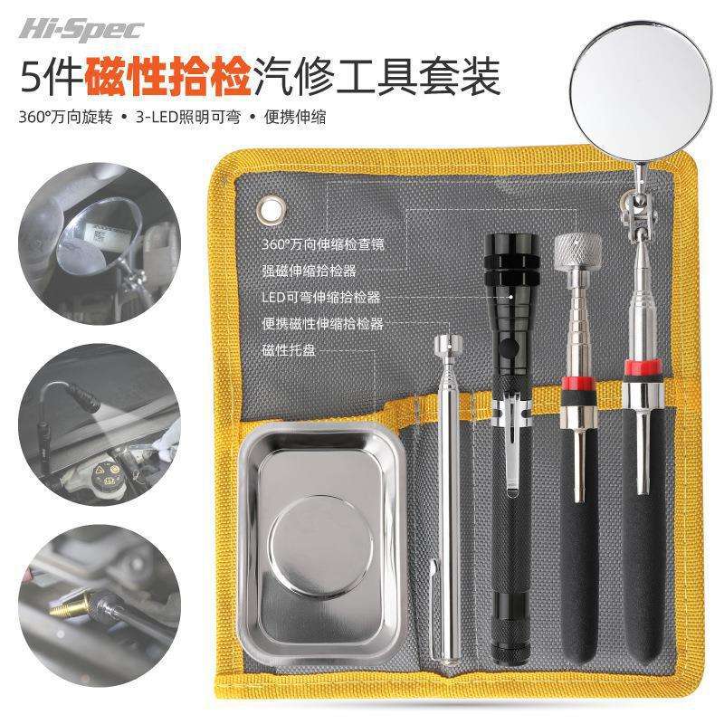ชุดเครื่องมือแม่เหล็กซิเม็ง 5 ชิ้น ชุดซ่อมรถยนต์สแตนเลส พร้อมกล่องเก็บแบบนุ่มและก้านต่อขยาย