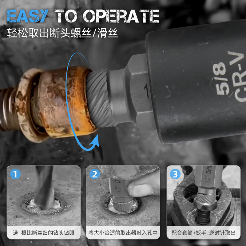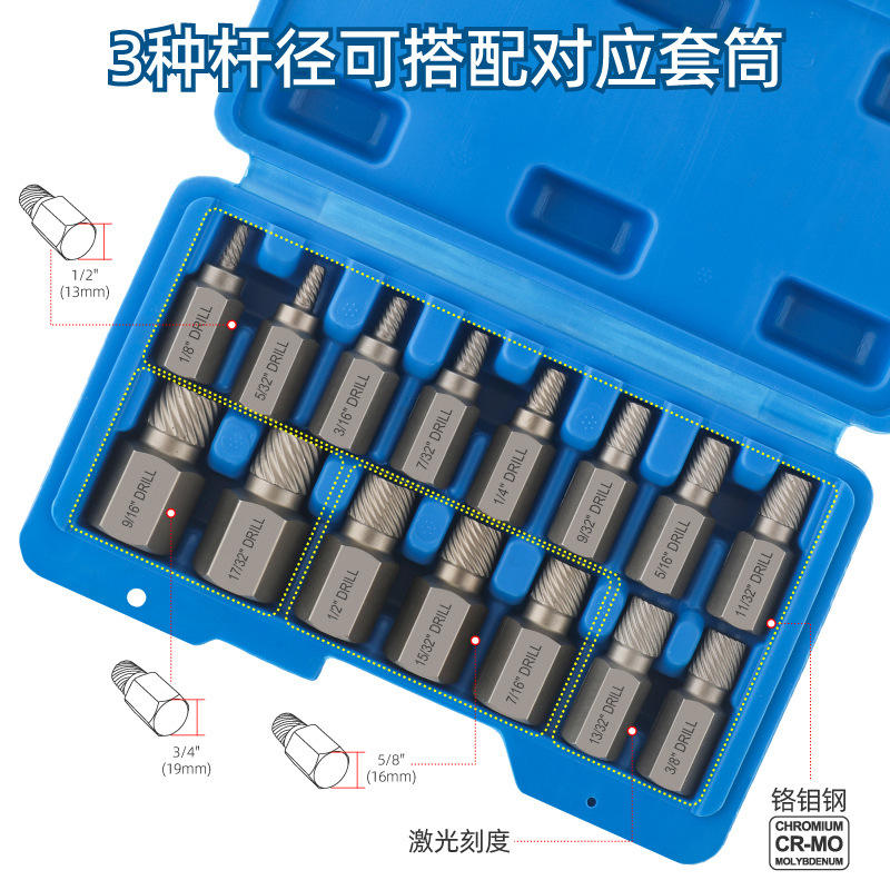 ชุดถอดสกรู Ximeng 10-15 ชิ้น ชุดดอกสว่านเกลียวแบบ Imperial นิ้ว ทำจากเหล็กโครเมียมโมลิบดีนัม สำหรับถอดสกรูเสียหาย