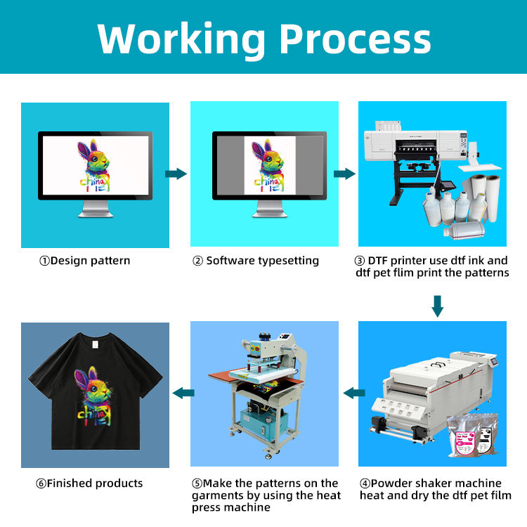 Xinflying เครื่องพิมพ์ DTF อัตโนมัติ5หัว60ซม. พร้อมเครื่องปั่นชุดเต็ม EU AU US Plug