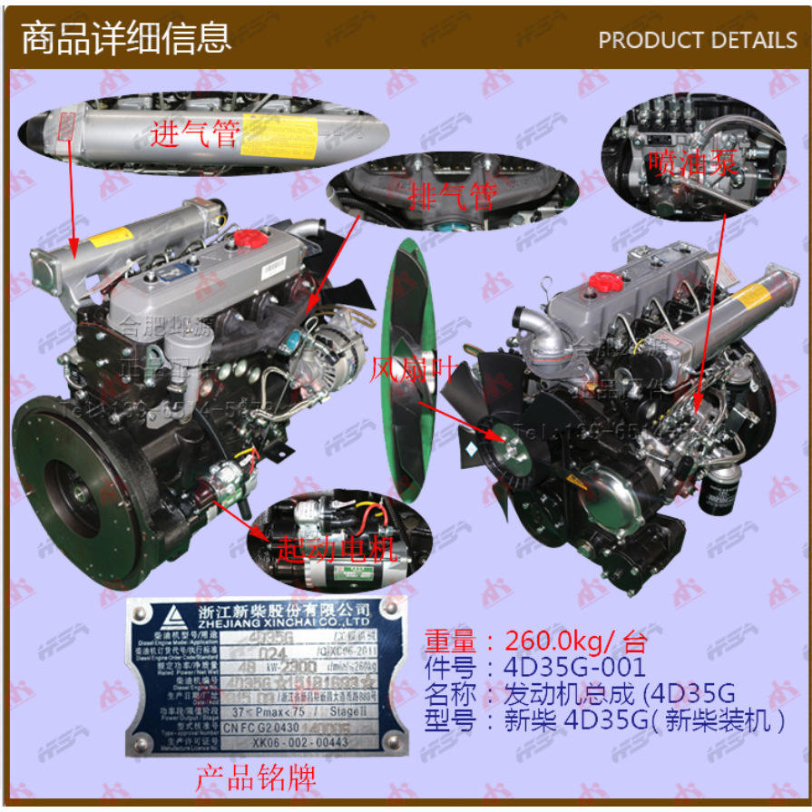 ชุดประกอบเครื่องยนต์รถยกซินไฉ 4D35G เครื่องยนต์สันดาปภายใน 4D35G-001 ติดตั้งแล้ว