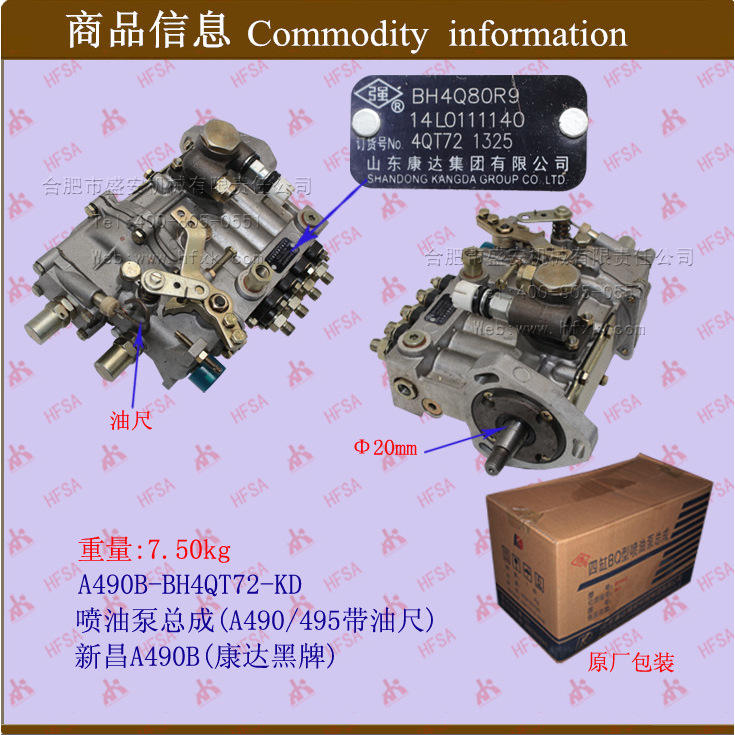 ชุดปั๊มหัวฉีดน้ำมันเชื้อเพลิง Xinchang A490B Kangda พร้อมก้านวัดระดับน้ำมัน แผ่นสีดำ 490A/495-BH4QT72 สภาพใหม่/มือสอง รหัสเครื่องยนต์