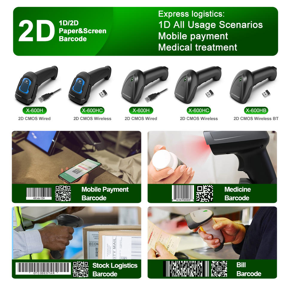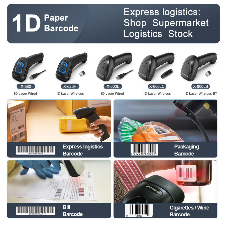 เครื่องอ่านบาร์โค้ด Xincode แบบมือถือ 1D 2D QR ไร้สาย ใช้เลเซอร์ สำหรับใบเสร็จรับเงิน เครื่องบันทึกเงินสด การจัดการสินค้าคงคลัง ช็อปปิ้ง ธนาคาร เช็ค และระบบ POS