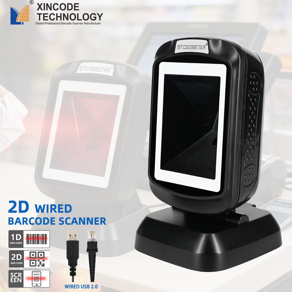 เครื่องอ่านบาร์โค้ด Xincode แบบรอบทิศทาง 1D 2D สำหรับวางบนโต๊ะ รองรับการสแกนคิวอาร์โค้ด แบบมีสาย USB สำหรับร้านค้าและคลังสินค้า