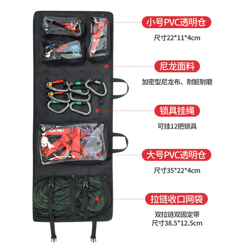 กระเป๋าเก็บอุปกรณ์ปีนเขาซินดา 38.5x12.5 ซม. ไนลอนกันน้ำพร้อมกระเป๋าพีวีซีสำหรับการปีนเขาและการสำรวจถ้ำ