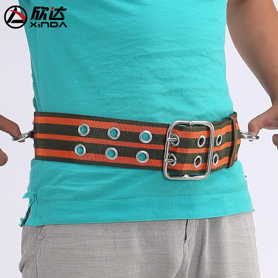 เข็มขัดนิรภัยป้องกันการตก Xinda ปรับได้ ทำจากโพลีเอสเตอร์ พร้อมห่วงเหล็ก D-ring 2 ห่วง สำหรับการปีนเขาและงานที่สูง