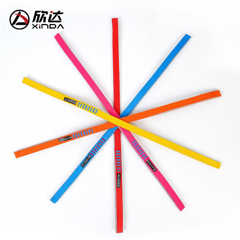 สายรัดโพลีเอสเตอร์ Xinda ขนาด 60 ซม. 80 ซม. 120 ซม. ทนทานต่อการเสียดสี ผลิตในจีน รับผลิตภายใต้แบรนด์ส่วนตัว สำหรับอุปกรณ์ปีนเขาและสำรวจถ้ำ