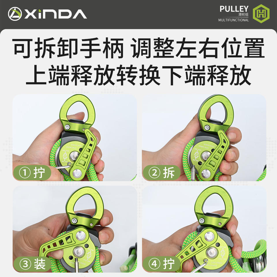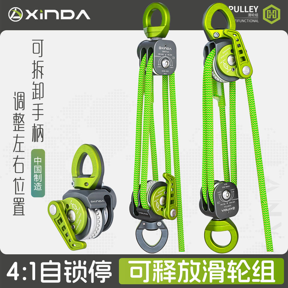 ระบบรอกสองทิศทางแบบปลดล็อคได้ Xinda อัตราทด 4:1 สายสลิงขนาด 8 มม. ชุดยกอลูมิเนียมอัลลอย