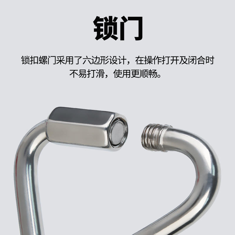 คาราไบเนอร์รูปสามเหลี่ยม Xinda สแตนเลสสตีล Mellon Lock ตัวล็อคเพื่อความปลอดภัยสำหรับปีนเขา แบบปลดเร็ว อุปกรณ์ปีนเขา
