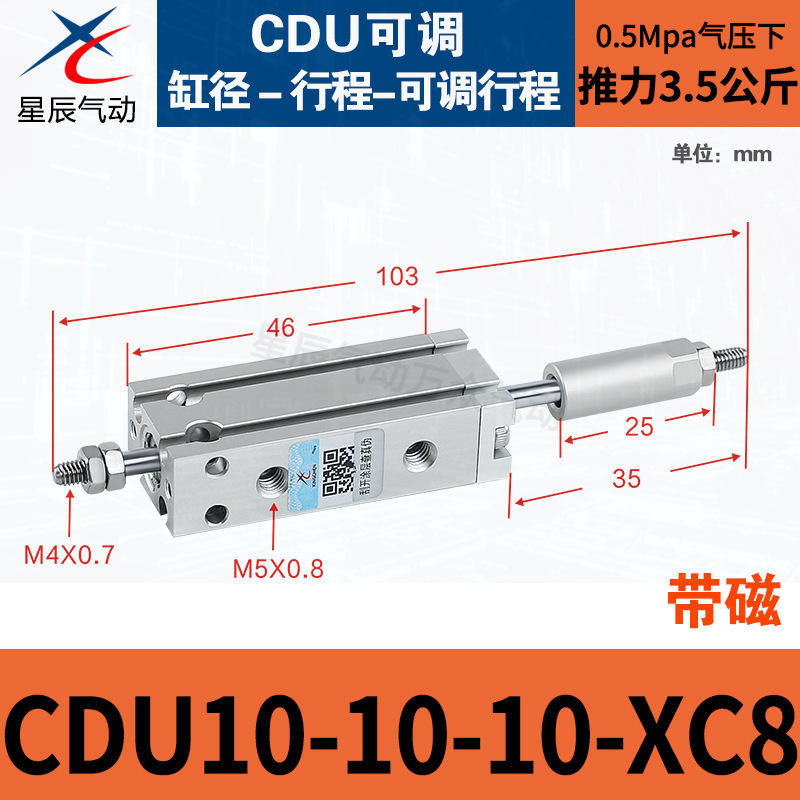 กระบอกลมแบบติดตั้งอิสระความแม่นยำสูง Xingchen รุ่น CDUJ16/25/20/10-30*50*32X40S