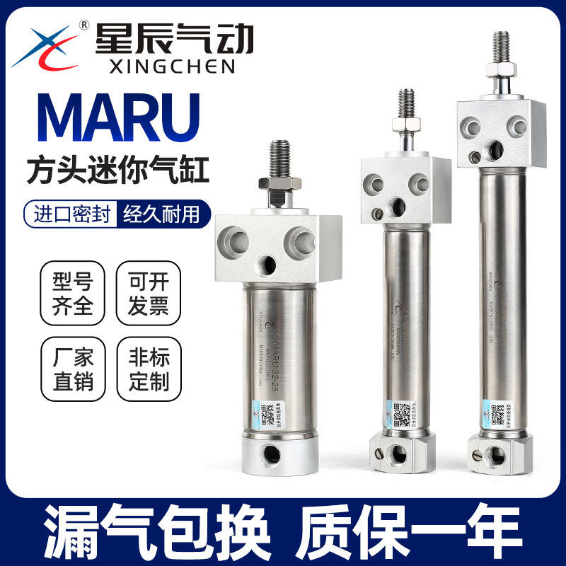 กระบอกลมขนาดเล็กแบบใหม่ Xingchen ชนิดหน้าแปลนสแตนเลส หัวสี่เหลี่ยม MARU16/20/25/32-50/75/100S สำหรับเครื่องจักรอุตสาหกรรม