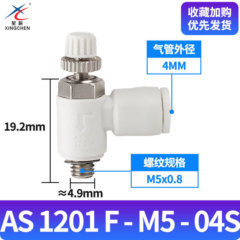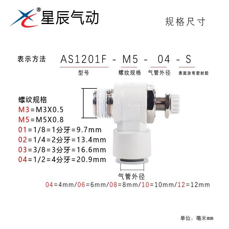 ซิงเฉิน นิวเมติกส์ จำหน่ายข้อต่อกระบอกสูบแบบปรับได้ AS1201F/2201/3201 วาล์วควบคุมความเร็ว วาล์วควบคุมการไหล และอุปกรณ์อื่นๆ