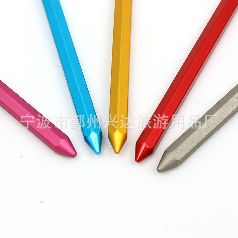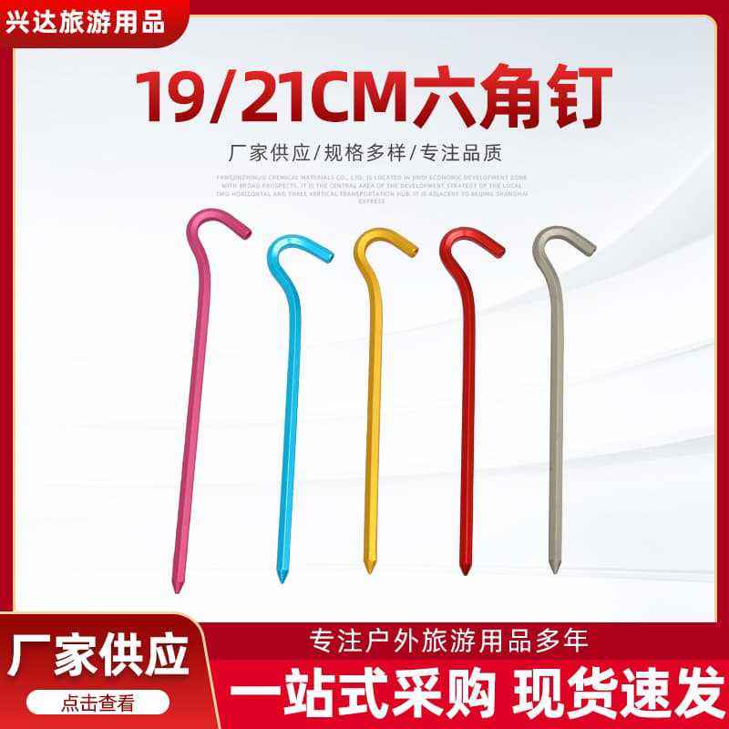 สมอบกอลูมิเนียมอัลลอยด์ Xingda ขนาด 21 ซม. 19 ซม. รูปทรงหกเหลี่ยม มีรูสำหรับยึด ใช้สำหรับตั้งแคมป์กลางแจ้ง มีหลายสี