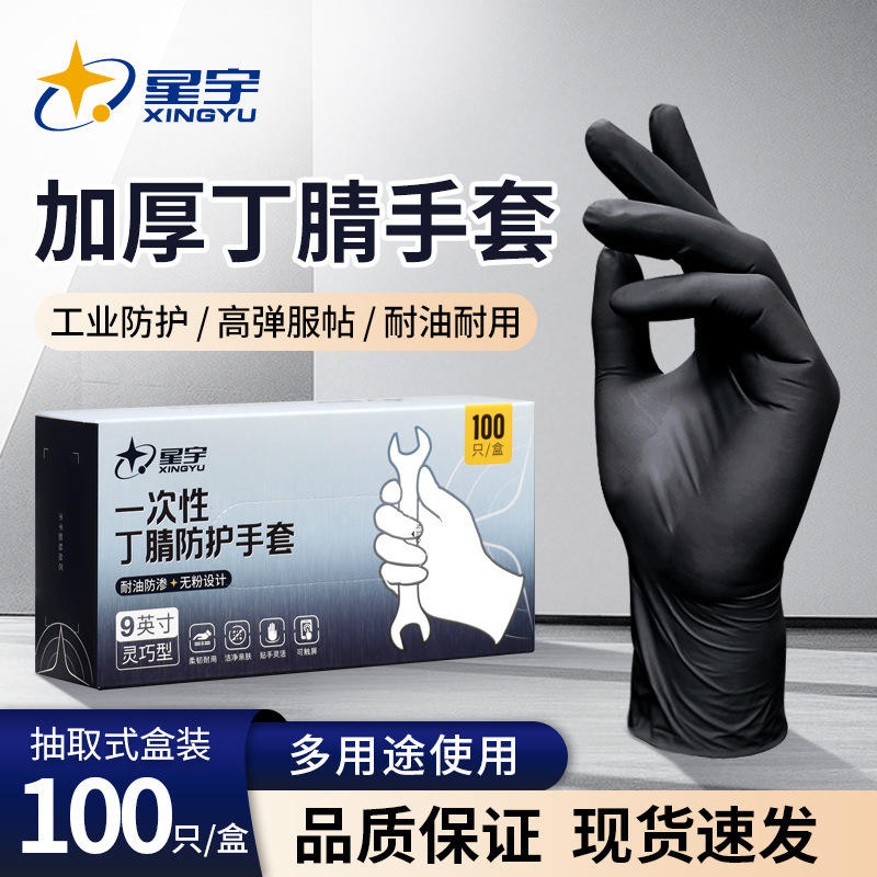 ถุงมือไนไตรล์ Xingyu FJ3500 หนา ทนทาน ปราศจากแป้ง สำหรับการแปรรูปอาหาร ใช้งานทั่วไป ใช้ครั้งเดียว ไม่มีส่วนผสมของน้ำยาง