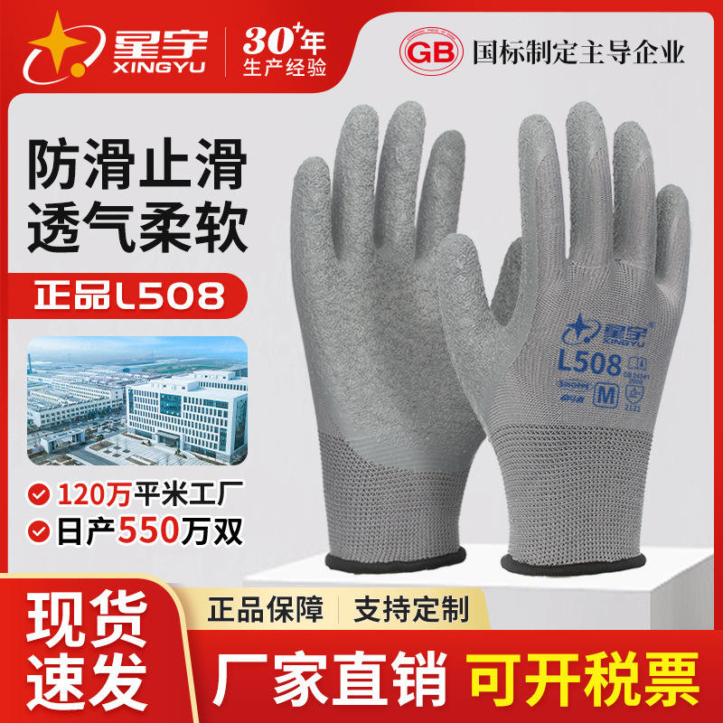 ถุงมือยางลาเท็กซ์ Xingyu FM325 ยางธรรมชาติ เย็บ 13 เข็ม ทนต่อการเสียดสี กันลื่น สำหรับงานก่อสร้างและเครื่องจักร