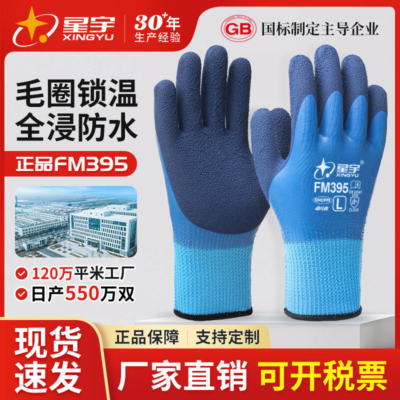 ถุงมือยาง Xingyu FM395 ขนาด L กันลื่น ทนทาน สำหรับงานก่อสร้างและห้องเย็น
