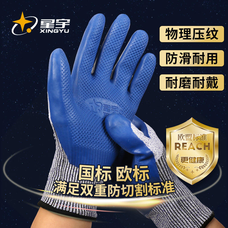 ถุงมือเคลือบไนไตรล์กันบาด Xingyu H515 H575 ระดับ 5 กันลื่น สำหรับงานก่อสร้าง