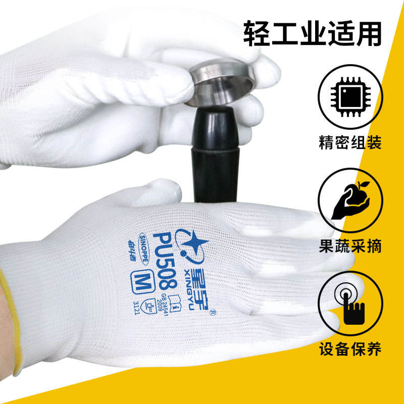 ถุงมือทำงานซิงหยู พี508 ขนาด M เคลือบฝ่ามือป้องกันไฟฟ้าสถิตสำหรับใช้ในโรงงานอิเล็กทรอนิกส์ ระบายอากาศได้ดี น้ำหนักเบา
