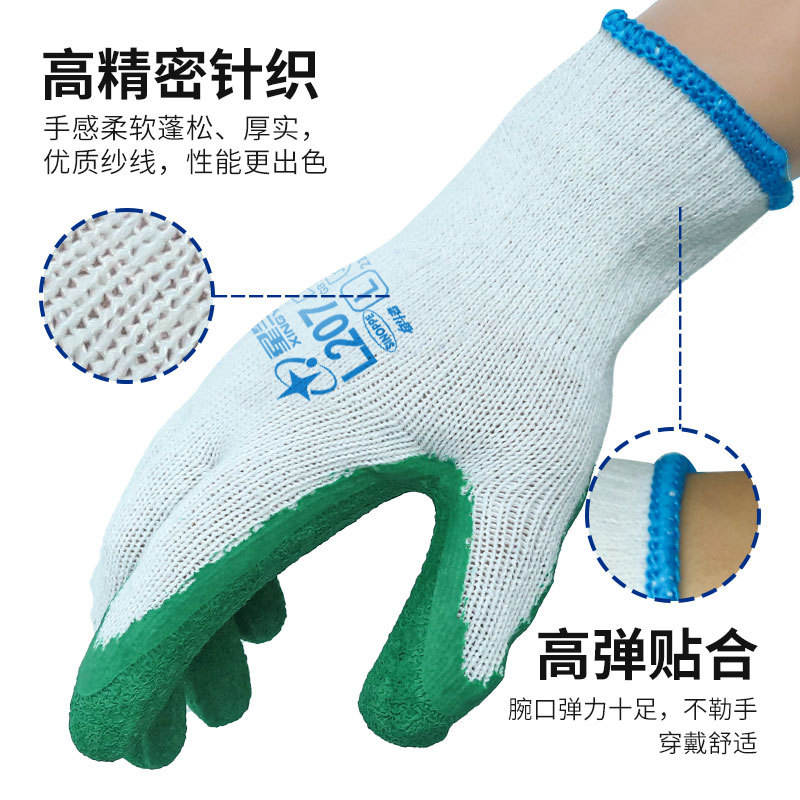 ถุงมือเซฟตี้ Xingyu รุ่น L207 13 เส้นด้าย โพลีเอสเตอร์ คอตตอน เคลือบยางลาเท็กซ์ กันลื่น ทนทาน ระบายอากาศได้ดี ถุงมือป้องกันสำหรับทำงาน