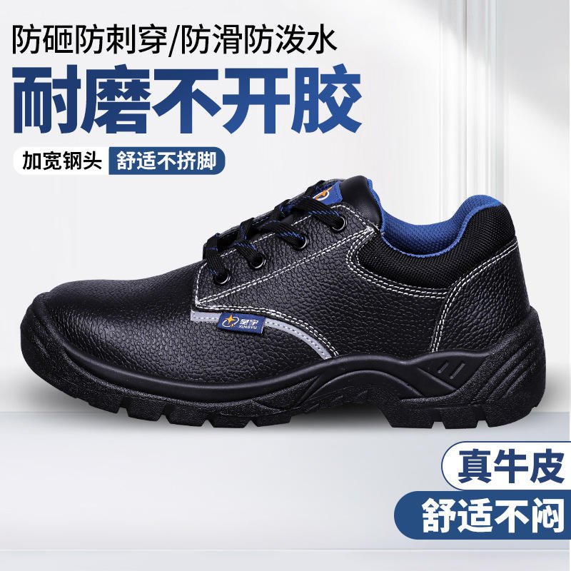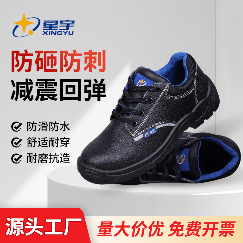 รองเท้าเซฟตี้ซิงหยู หัวเหล็ก หนังวัว รองเท้าทำงานผู้ชาย ป้องกันการกระแทก ป้องกันการเจาะทะลุ ไซส์ 35 ถึง 48 สีดำ สำหรับงานอุตสาหกรรมเซมิคอนดักเตอร์