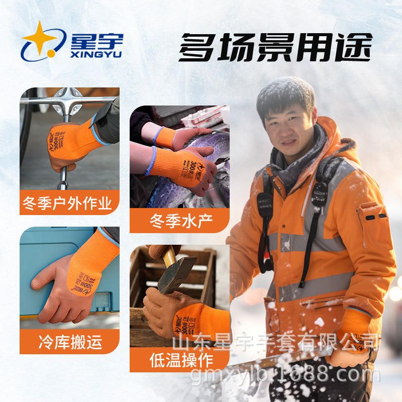 ถุงมือทำงานซิงหยู 300 # ถุงมือป้องกันสารเคมีเคลือบไนไตรล์ที่ฝ่ามือ ทนต่อการเสียดสี กันลื่น ขนาด L สำหรับงานทั่วไป