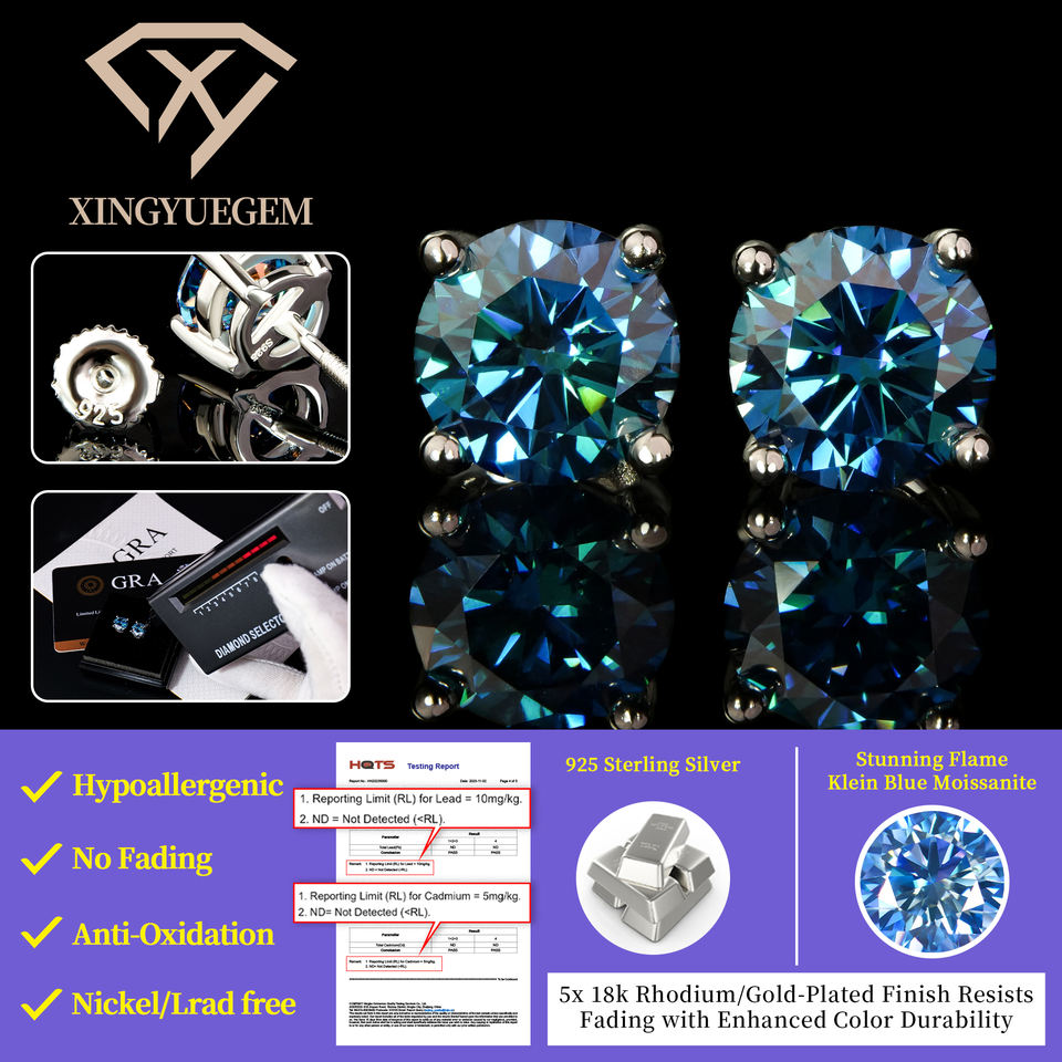 ต่างหูแต่งงานทรงกลมชุบทองคำขาว Xingyue Classic ประดับเพชรโมอิสซาไนต์ทรงกลมสี D ระดับความสะอาด VVS ตัวเรือนเงินแท้ 925 ผ่านการทดสอบด้วยเครื่องตรวจสอบเพชร