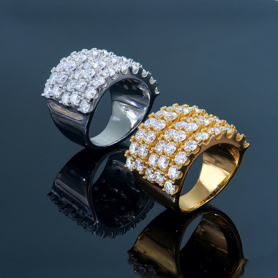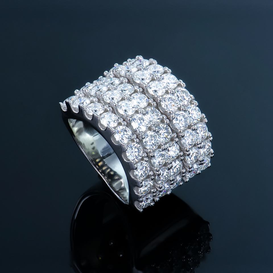 เครื่องประดับแฟชั่น Xingyue Gems แหวนหมั้นเพชรโมอิสซาไนต์ 5 แถว เกรด VVS เงินแท้ 925