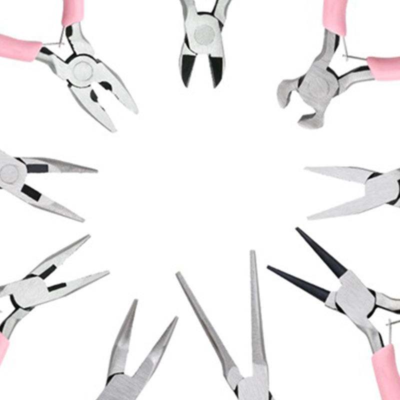ชุดคีมทำเครื่องประดับ 9 ชิ้น ยี่ห้อซินรุ่ย ทำจากสแตนเลส ด้ามจับสีชมพู สำหรับงาน DIY หลายขนาด ปากแหลม