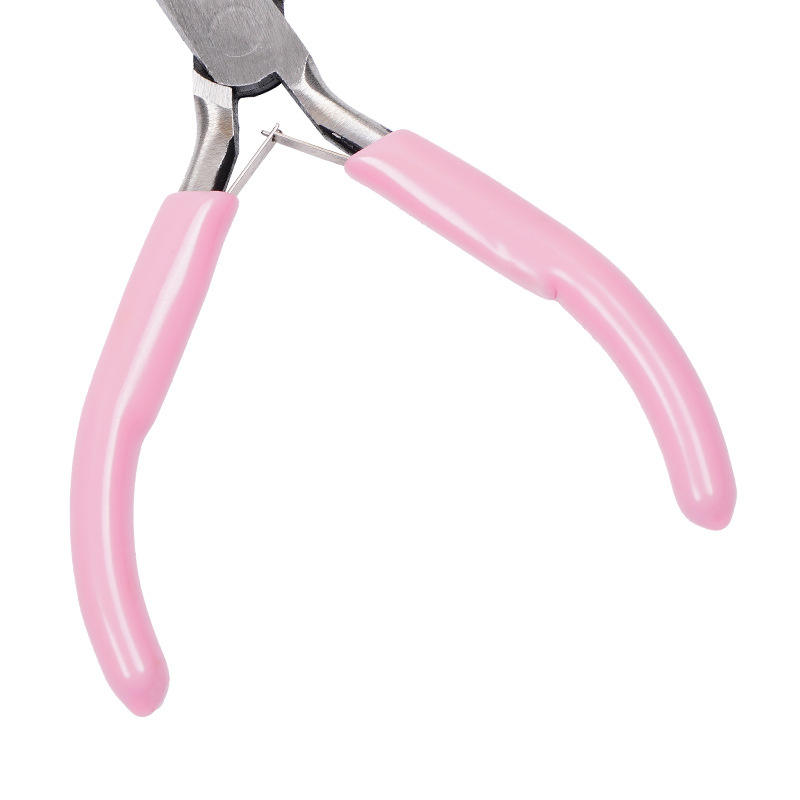 คีมปากแหลมสีชมพู ขนาด 4.5 นิ้ว ไม่มีฟัน มีคมตัด