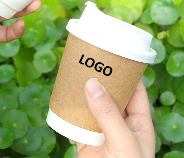 Xinrunjin Disposable Double Paper Coffee Cup 8oz 280ml Heat Resistant Takeaway Cup With Lid Milk Tea Cafe Office Catering Use
